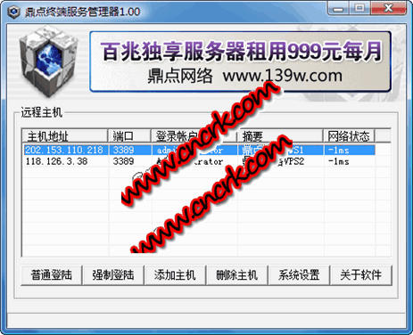 鼎点终端服务管理器 V1.0 简体中文绿色免费版 鼎点终端服务管理器是一款免费软件。该软件支持多台远程主机的管理和连接,采用windows 的远程连接界面,容易上手,安全性强!可以保存数台服务器的登陆信息,ping值等等,比以前的普通单链3389登陆器好用的多了哦!方便服务器较多的站长管理,
