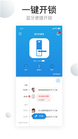 1、开锁(支持指纹开锁)。2、授权临时开锁。