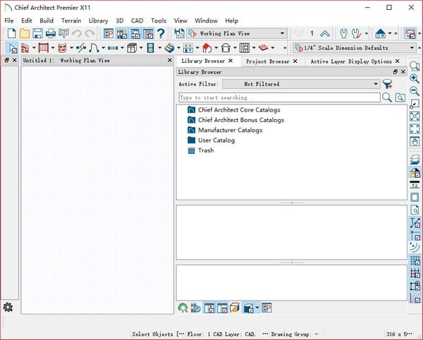 Chief Architect Premier X11官方版是一款专业的3D建筑家居规划软件,它的中文名叫做首席建筑师,是专门为3D家具建造师制作的一款设计工具,通过这款软件,设计师可以轻松地讲建筑的样式、风格、框架以及楼梯等房屋的全部结构模拟出来,让用户在软件中渲染出房屋的模型结构,再根据这个模型来建造家居,可以让家居规划、室内规划、厨房和浴室的规划设计变得更加轻松简单,大大减小设计师的工作压力,同时家居规划的效率也能大大提高,软件简单易用,支撑多种自动化结构功用,拥有一个广泛的3d库的建筑对象和工具,使得它更容易地细节和装饰你的设计风格,可以很好地将你的家居设计风格展现出来,让家居的细节完美的呈现在你面前,该软件还提供强大的绘图工具,包括构建工具、三维可视化和cad工具等等,这些工具将是你得力的帮手,使用这些强大的工具快速创建规划,再根据标准建筑实践,使设计过程有效和高效。如果你要创建一个墙壁,它可以在2d和3d之间无缝和同步编辑,编辑的效率得到提升,让你的设计操作更加简化。x11版本在x10版本上进行了改进,功能要更加强大,更加易于使用,比如对渲染选项、CAD图块管理、光线跟踪等进行了改进,在使用上体验更好,家居设计可以更加快速、高效地完成,非常适合家居设计师使用。【软件特点】