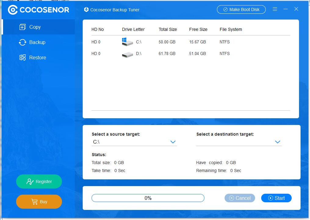 Cocosenor Backup Tuner官方版是一款界面直观、功能突出、易于使用的系统和分区备份软件。Cocosenor Backup Tuner官方版可以帮助用户复制、备份和恢复整个分区或磁盘,甚至整个Windows操作系统。Cocosenor Backup Tuner给大家提供了快速、安全的备份系统或分区数据的方法。【软件特点】