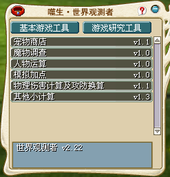 世界观测者是经典网游魔力宝贝i的先进综合工具,解决宠物计算之外的其他一切有意义的可计算的问题的最佳解决方案 搭配魔物观测者即可了解整个魔力宝贝的数据系统。