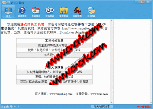 沸点站长工具箱 V1.3绿色免费版下载 沸点站长工具箱是一款站长工具合集,主要功能有收录查询、友链查询、排名查询、指数查询、长尾挖掘、SEO建议,所有功能都可批量查询。