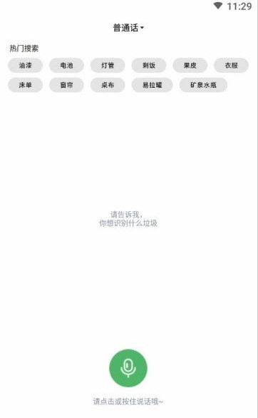 1:AI智能语音识别,(支持普通话,英语,方言等语言)快速搜索出垃圾类型。