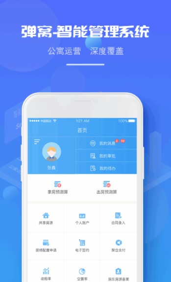 弹窝app,在线管理公寓的软件,这里实时掌握运营,数据可视化。平台还可以进行长租、短租等服务。智能管理系统提供,为大家减轻工作,提供工作效率,在线进行合同签约,续约等服务,非常方便实用!