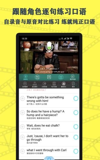 2、跟随角色逐句进行口语练习,自录音与影视原音对比练习,练就纯正口语。