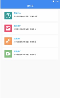 赚分享app是一款发圈赚钱的软件,提供链接推广、视频推广、图文推广等功能,只要大家分享朋友圈就可以赚钱。任务非常简单,操作轻松,让你在家躺着赚钱,还有专属客户陪伴你!