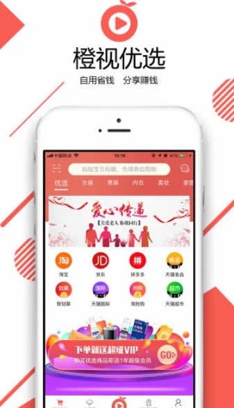 拥有橙视优选APP,线上线下,衣食住行,吃喝玩乐,随时随地,轻松省钱拿返利,省钱省时间!