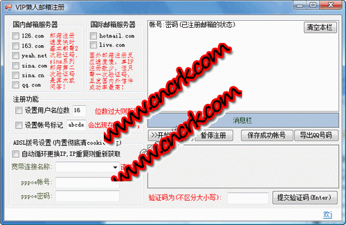 VIP懒人邮箱注册 V4.1绿色免费版 VIP懒人邮箱注册是一款国内优秀的邮箱注册软件,本软件选取国际邮箱和国内大牌优质邮箱为注册目标。全程模拟人工自动注册,只需本人填入验证码,即可完成注册过程,并自动开通pop/smtp功能。采取多个服务器循环交错注册,每个注册前均自动清理cookie充分利用一个IP可以注册的邮箱数。当所选择的服务器全部不能注册时,即自动更换不重复的IP。让你利用空闲的时间,轻松注册大量邮箱帐号。