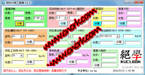 1、"gangcai.mdb"文件必须放入与“钢材计算工具箱.exe”同目录下的“data”文件夹内,且不能更改文件名,否则软件不能使用;