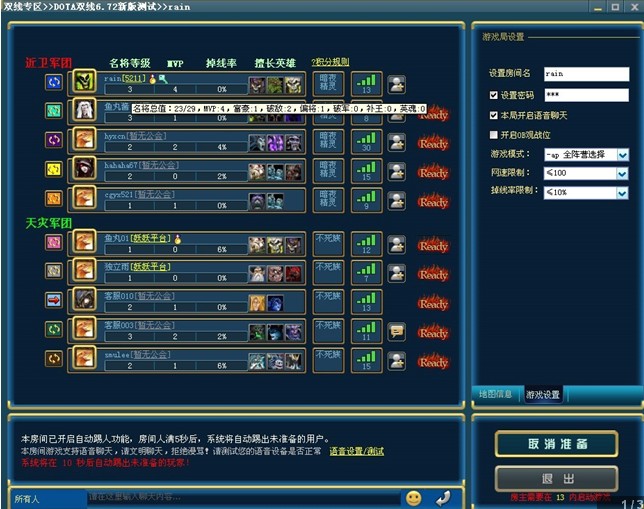 2、右侧为游戏局设置,如果您是房主,可对房间名称、密码、游戏模式、进入限制等进行设置;