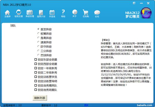 (6)锁定特殊球队阵容:如果你还在为怀才不遇而纠结的话,这将会是你最好的选择,修改全明星阵容,锁定自己的首发位置!