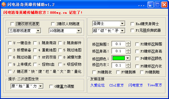 人物变身 小型秒杀 修改重力 修改胸围 修改身高 修改颜色 无限投掷武器 自杀 打开商店 打开邮箱 一键修理 重启地图 跳入下图 跳过动画 脱掉内衣,脱掉裤子 脱掉鞋子 脱掉衣服 三倍加速