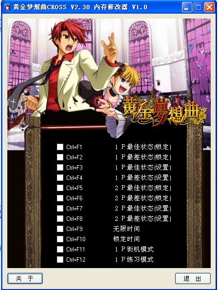 黄金梦想曲Cross修改器是黄金梦想曲Cross游戏修改工具,适用于黄金梦想曲Cross多个版本,功能包括无限切换人物、可选相同人物、以及1P修改 2P修改等,应该是目前为止互联网上能找到的功能最全的黄金梦想曲修改器了。