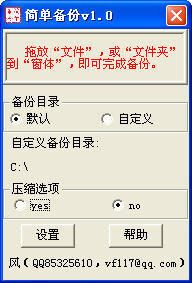 简单备份(easybak)用于文件或文件夹的备份,拖放文件或文件夹到窗体,即可完成备份。
