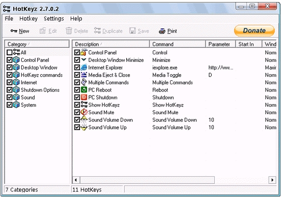 HotKeyz V2.8.3.0 英文绿色免费版 HotKeyz 为执行其它文件,文件夹或者运行命令获取热键控制。该软件让你可以打印输出一个你的热键列表以便参考。你可以以通常,最小化或者最大化情况运行应用软件。参数选项功能在运行其它就像你的浏览器那样的特殊站点作为参数的时候为你提供参数控制。该软件特别推出用于最小化,最大化,恢复或者关闭活动窗口的默认热键功能