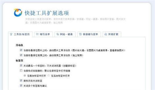 - 改变标签页行为,使你可以通过双击标签来关闭页面;关闭最后一个标签时窗口不会关闭,而是打开一个新标签;总是在新标签打开标签