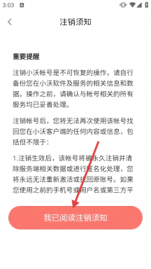4、阅读【注销须知】后,点击【我已阅读注销须知】按钮,确认注销前的提示内容。