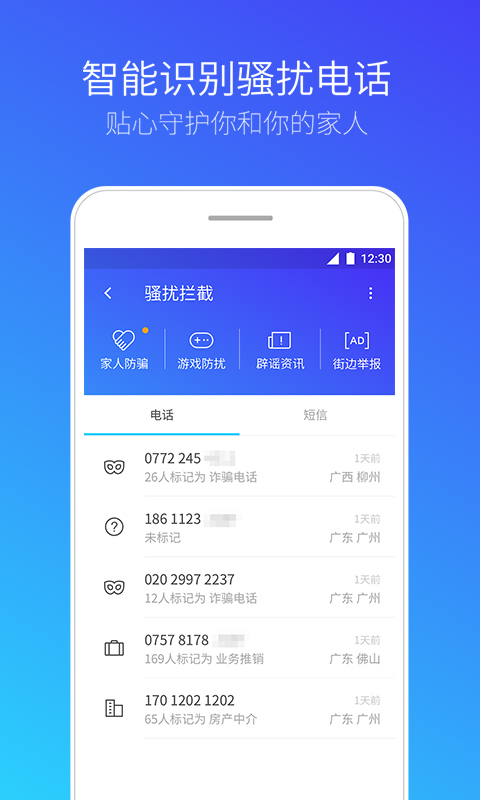 4、智能识别诈骗电话,贴心守护你和你的家人;