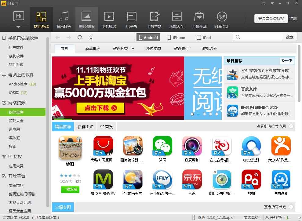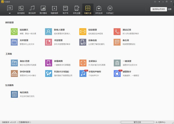 91手机助手不仅仅是一款产品,更是一种服务的理念,结合91手机平台所提供的手机资源将为用户带来全新的体验。