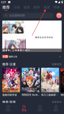 1. 进入动漫共和国,在顶部的导航栏中点击美漫。