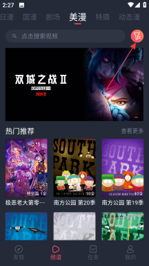 2. 当进入美漫页面时,点击页面右上角的筛选图标。