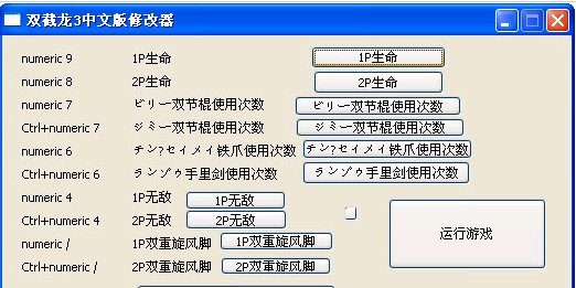 双截龙3模拟器作弊工具 功能: 修改IP和2p玩家的生命值 双节棍使用次数,铁爪,手里剑的使用次数 无敌,双重旋风脚修改