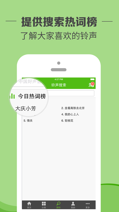 百万免费铃声,轻松一键设置!铃声,彩铃,短信,闹铃全都搞定。