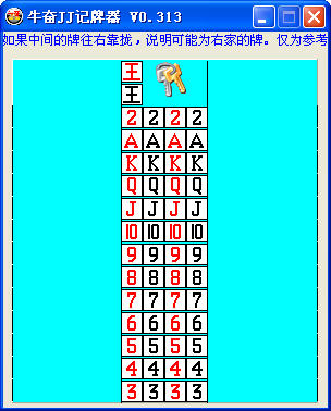 牛奋JJ记牌器 v0.80 绿色免费版 牛奋JJ记牌器能够帮助玩家记录出的牌,用于记忆,猜测对方的牌面