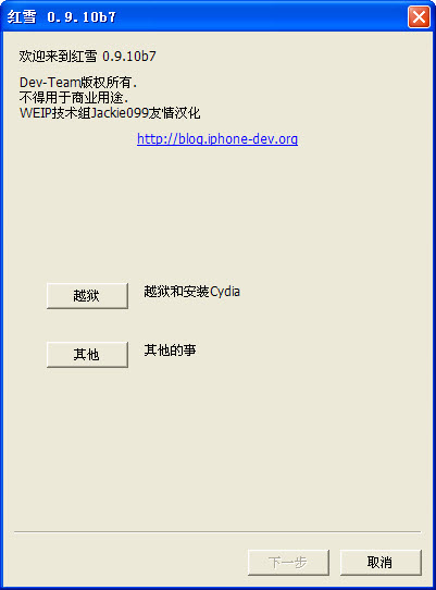 早前使用过红雪0.9.10b1越狱过的用户可以使用新的越狱工具进行重新越狱,(使用PwnageTool自定义固件越狱的用户也可以使用新版红雪再次越狱)需要注意的是不要勾选Install Cydia选项。