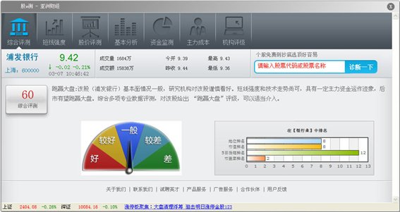 股e测是由亚洲财经网众多证券分析师以及高端技术人员历经一年时间,策划开发的一款个股评测工具,股e测的产品核心是对股票质地、技术面、消息面进行360度全方位的检验评测,打破了以往评测产品条件简陋、目的性不强的惯例,能够对股民的实际市场操作起到重要的参考作用。