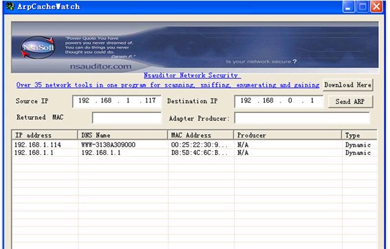 ArpCacheWatch是一个监视Windows的ARP缓存工具。听过arp攻击,arp欺骗吧?就是利用这个arp行为,ARP缓存包含IP/MAC 的翻译,这样每次 IP 数据包要发送,不必通过广播查询的 MAC 地址,而是它可以使用缓存的地址。