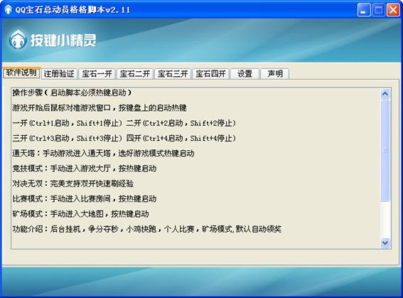 一开(Ctrl+1启动,Shift+1停止) 二开(Ctrl+2启动,Shift+2停止)