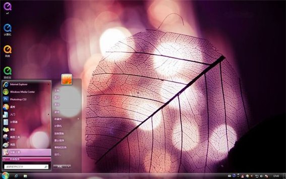 透明树叶桌面背景 简体中文官方安装版 win7电脑主题