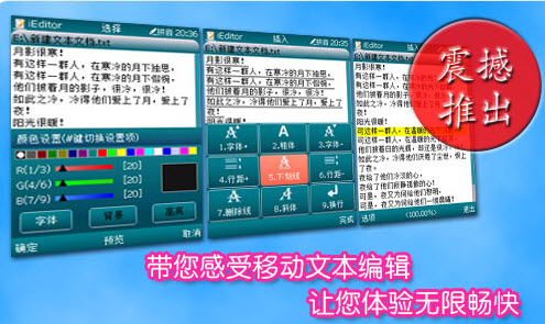 首创将分段装载技术融入文本编辑产品中,真正做到在移动受限设备上无任何限制的打开和编辑文本,在同类产品中独一无二。