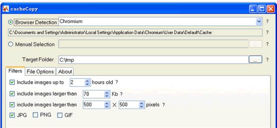 将网站页面上的图片文件批量保存的工具 可以选择保存JPG,GIF,PNG等格式 选择使用的浏览器和保存设定等
