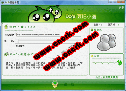 豆肥小图 1.2 简体中文绿色免费版 豆肥小图(dofephoto),一款全新的豆瓣辅助pc客户端,最大的亮点在于提供简洁、便捷、贴心的豆瓣相册下载服务与良好的用户使用体验,最大程度避免了现今产品如firefox\chrome\opera\maxthon等各种浏览器插件产品进行复杂的下载体验(现今各种浏览器插件产品复杂的流程让用户望而怯步)