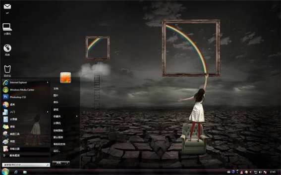 这款主题的立体感很强,画面中一个女孩站在沙发上摘得那乌云满布中的一道彩虹,想要给自己的生活增添一些光彩,因为她坚信只要有爱就有希望吧!