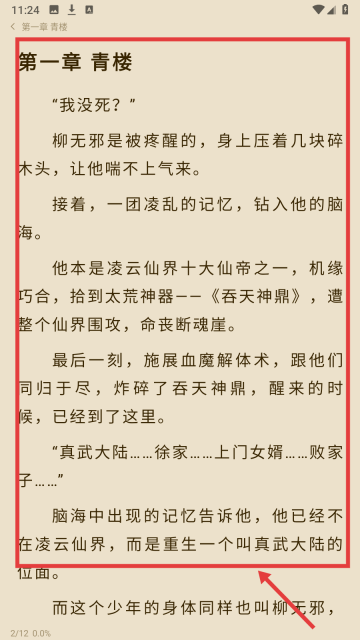 4、阅读页浏览【正文】内容,即可沉浸阅读小说世界。