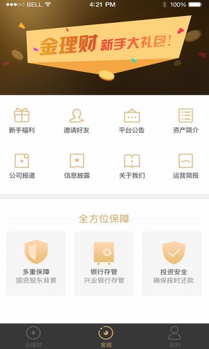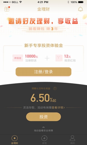天府金理财app是备受投资者青睐的互联网理财应用,创新理财产品“团团赚”专注于安全资产,让投资人轻松理财,并获得可预期的稳定回报。所以说,天府金理财app是投资者的贴身理财利器。【软件特点】