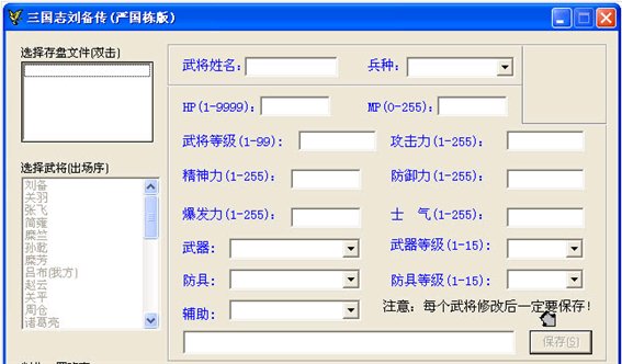 严国栋开发的修改器,可以用于其它三国志mod游戏,如“岳飞传、东吴传、吕布传、轩辕传等”