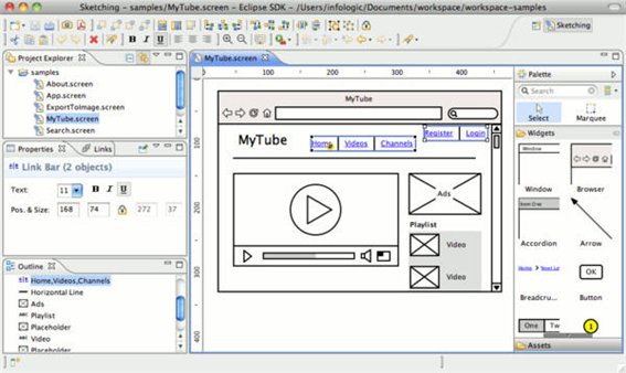 在项目正式开发前创建原型有利于用户和开发者理解系统,在Eclipse中使用WireframeSketcher能够更好的进入项目开发流程。WireframeSketcher 提供了一个pre-drawn、text-driven预制图,以及文本驱动的widgets,能够展现出通用的UI界面,你可以在编辑器中任意拖拽,迅速画出界面,并使用XML存储。