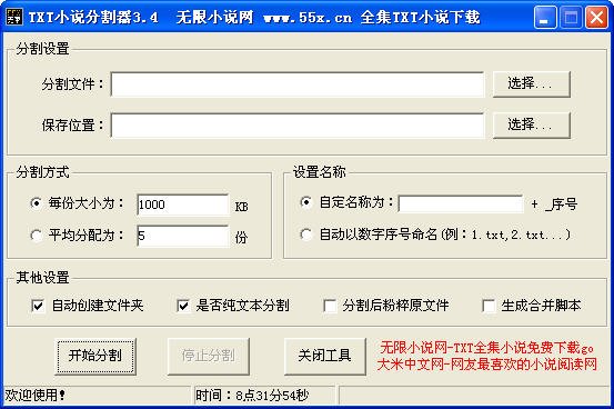 无限TXT小说分割器 V3.5 绿色免费版 小说TXT分割器可以切割无限制大的TXT小说,分割之后存放手机可以快速打开并且阅读