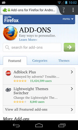 Firefox浏览器Android版正式版全球同步发布!Firefox Mobile 是Mozilla基金会自桌面版的Firefox之后推出的一款基于移动平台的手机和平板设备专用浏览器,现已支持Android平台的移动设备和Nokia N900手机。想要随时随地进行上网冲浪,快来下载Firefox Mobile吧!