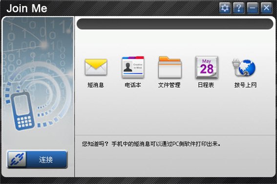 状态二:电脑与手机未连接,此时只能进行本地操作,例如编辑本地电话本、短消息等。