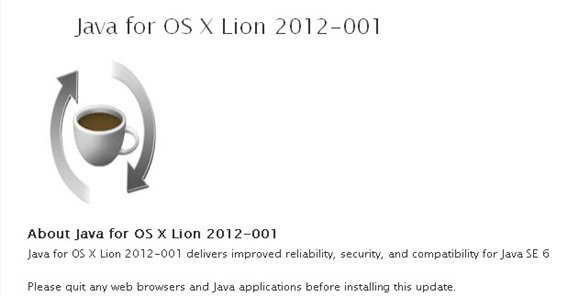 苹果刚刚发布了OS X版Java运行环境更新,将Java SE 6版本更新至1.6.0_31。这款升级补丁被称为Java for OS X LIon 2012-001,为Java SE 6提升了稳定性、安全性和兼容性。苹果还未在安全页面更新这次Java升级的具体信息,但是可能在今天之后公布具体的漏洞。