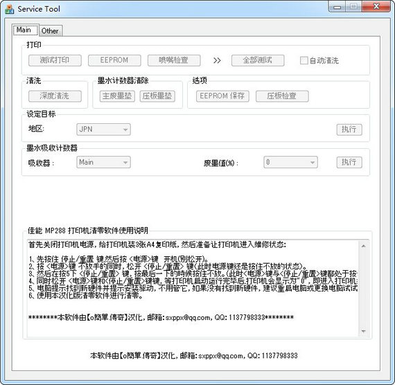 佳能mp288清零软件是款非常不错的打印机数据清除软件。佳能mp288清零软件帮助用户解决打印机废墨计数器已满、打印机不能正常工作等问题,帮助用户能够正常使用打印机。【使用说明】
