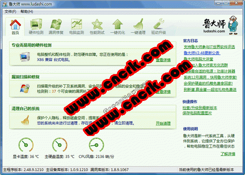 鲁大师拥有专业而易用的硬件检测,不仅超级准确,而且向你提供中文厂商信息,让你的电脑配置一目了然,拒绝奸商蒙蔽。它适合于各种品牌台式机、笔记本电脑、diy兼容机,实时的关键性部件的监控预警,全面的电脑硬件信息,有效预防硬件故障,让您的电脑免受困扰。鲁大师帮你快速升级补丁,安全修复漏洞,系统一键优化、一键清理、驱动更新。更有硬件温度监测等带给你更稳定的电脑应用体验。