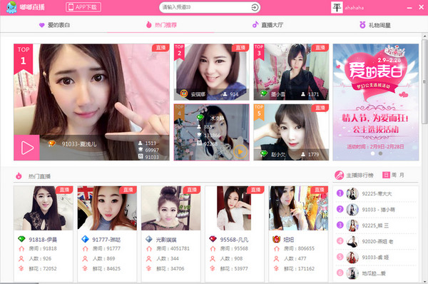 热门推荐可以帮您查看到当前最热门的房间和主播,直播大厅可以让你查看当前所有主播房间,礼物周星将为您实时展示目前正在争夺中的礼物周星榜单和上期周星。