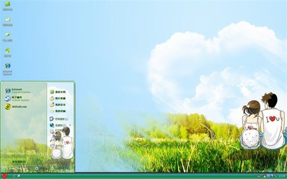 曾经天蓝蓝,曾经草绿绿,曾经的我们手牵手肩并肩,看着天边的云彩幻化成心形模样,这就是纯纯的爱吧,这款纯纯的爱xp主题非常清新自然,让人在忙碌生活中舒展心灵