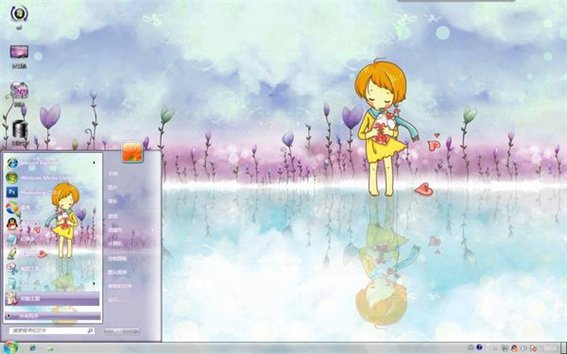 非常卡哇伊的,一个可爱的天使在河边默默的祈祷,手中还抱着一个纸包,那应该是很重要的东西吧,才会使得它这么重视,这款win7主题的桌面背景非常素雅,是淡淡的粉紫色,非常适合在春天使用哦!